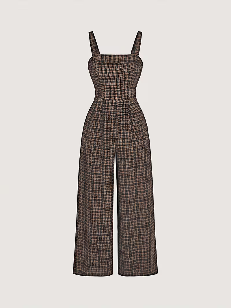 Sleeveless Plaid Jumpsuit with Straps