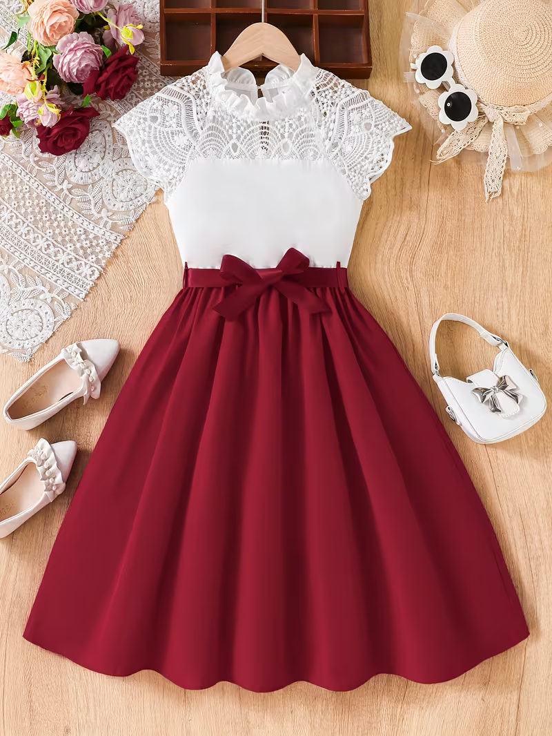 Teen Girl’s Lace Patchwork Short Sleeve Casual Dress
